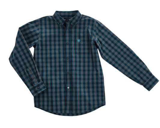 Ariat Boy's Pro Kodi Black/Blue Classic Fit Long Sleeve Western Shirt 10042802