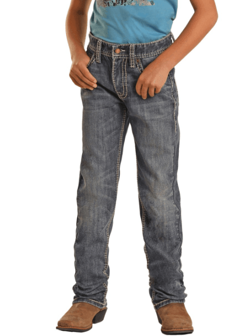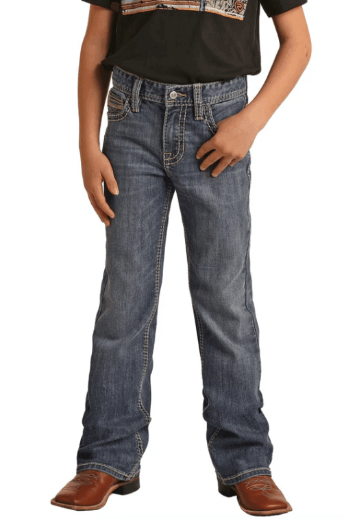 Rock & Roll Cowboy Boy's "BB Gun" Stitched Boot Cut Jeans BB0BD04259