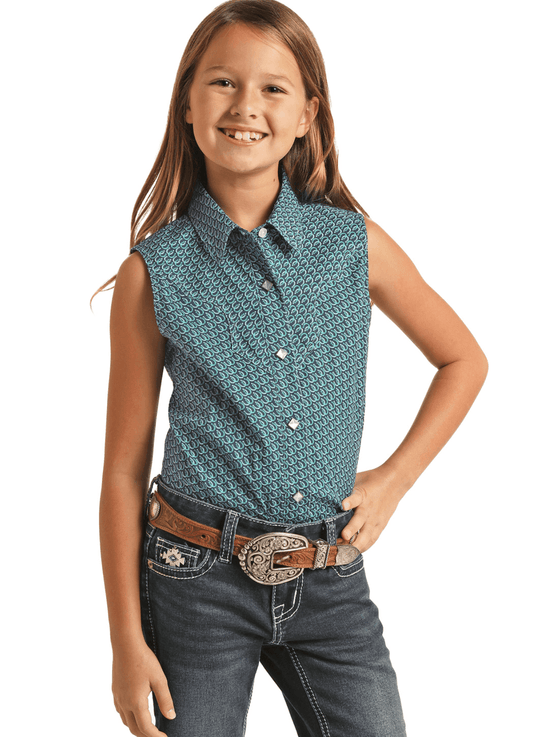 Rock & Roll Cowgirl Girl's Sleeveless Core Snap Up Western Shirt RRGSSSRZ80