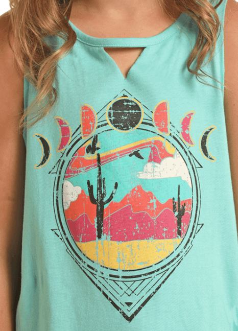Rock & Roll Cowgirl Girl's Turquoise Western Tank Top RRGT20R193