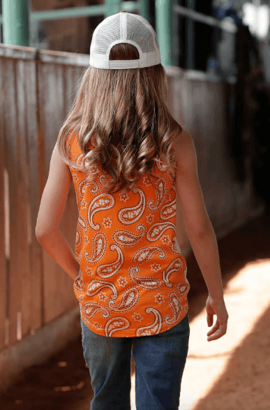 Rock & Roll Cowgirl Girl's Orange "Howdy" Tank Top RRGT20R190