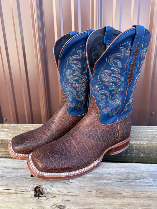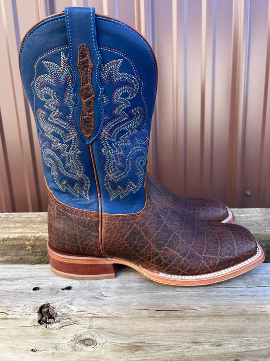 Anderson Bean Men's Saddle Brown Rustic Big Bass & 10” Sanded Boar Top Square Toe Cowboy Boots 335359