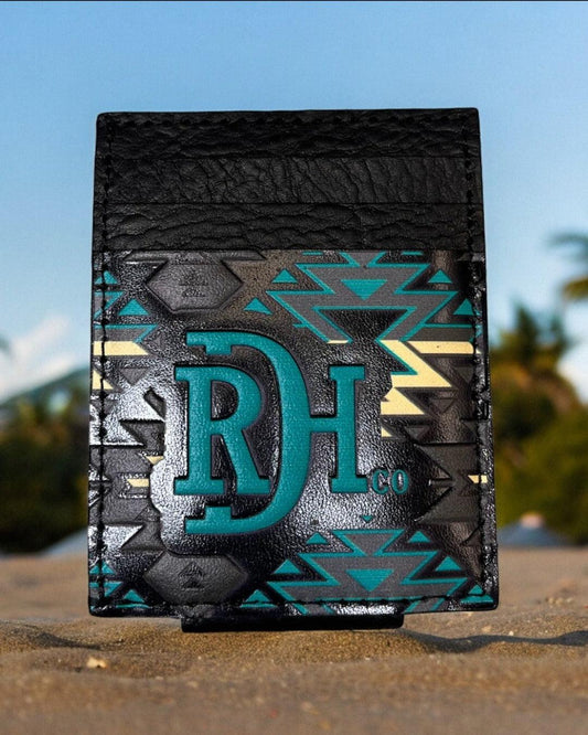 Red Dirt Hat Co. Black & Turquoise Aztec Leather Money Clip Card Case 24068875M4
