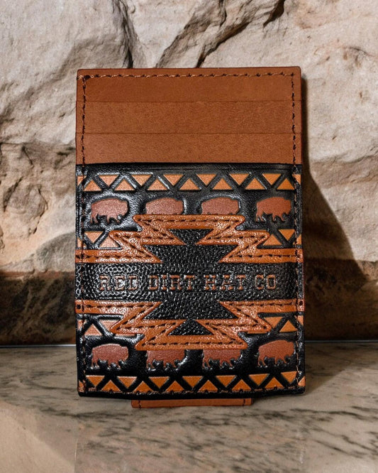 Red Dirt Hat Co. Black Aztec and Bison Leather Money Clip Card Case 24068875M5