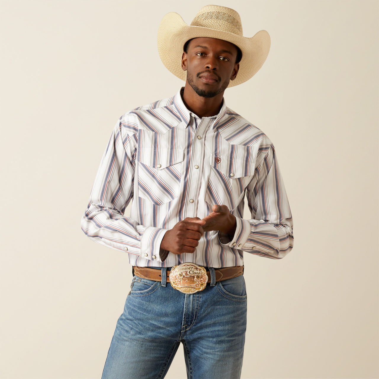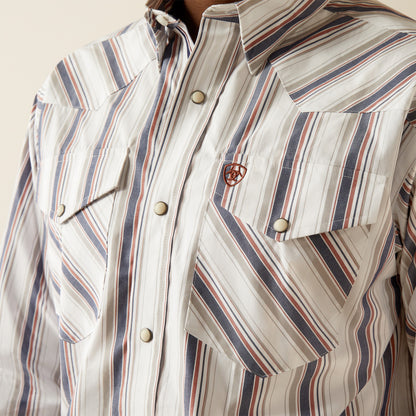 Ariat Men's Warrick Pro Series White Stripe Classic Fit Snap Long Sleeve Western Shirt 10058757