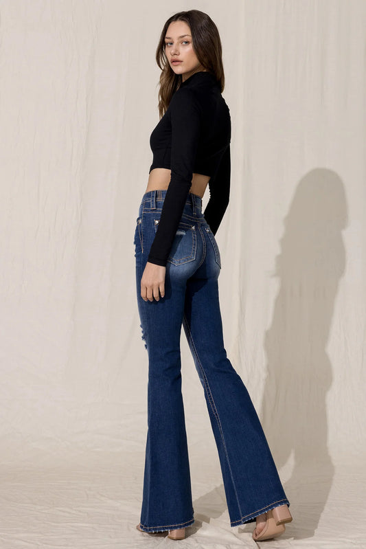 Miss Me Women's High Rise Dark Wash Flare Jeans H3636F65