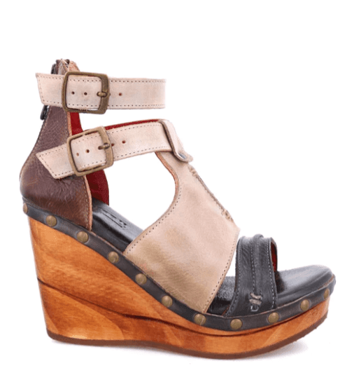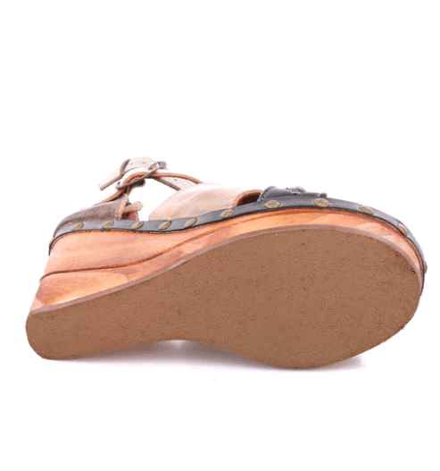 Princess is a remarkable fusion of precision and artistic design. The sustainable wooden wedge not only assures stability but also embodies eco-consciousness with grace. Meticulously woven strappy uppers accentuate both aesthetics and structural integrity in a seamless embrace. The double ankle buckle system offers adjustability, complemented by brass metal studs for both style and strength.