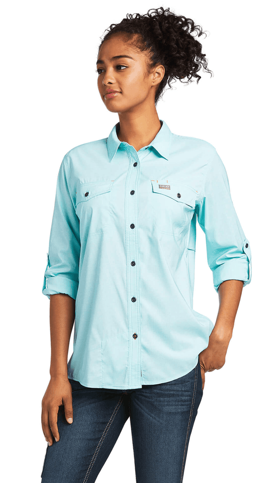 Ariat Women's Rebar Venttek Long Sleeved Button-Down Work Shirt Aqua Sky Heather 10039480