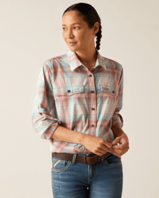 Ariat Women's Rebar Vanilla Ice Plaid Made Tough DuraStretch Long Sleeve Work Shirt 10048720