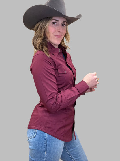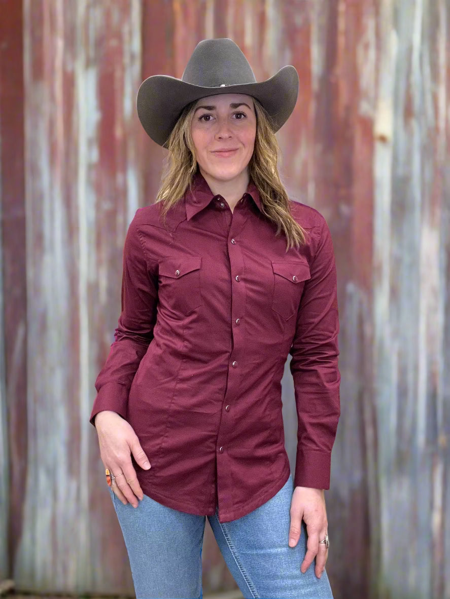 Panhandle Women's Burgundy Solid Long Sleeve Snap Up Western Shirt PSWSOSR075BUR
